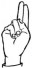 На ћирилици написано МАЈА ЈОВАНЧЕВИЋ састоји се из 14 слова [?]. Исписано ћириличном једноручном азбуком за глувонеме: